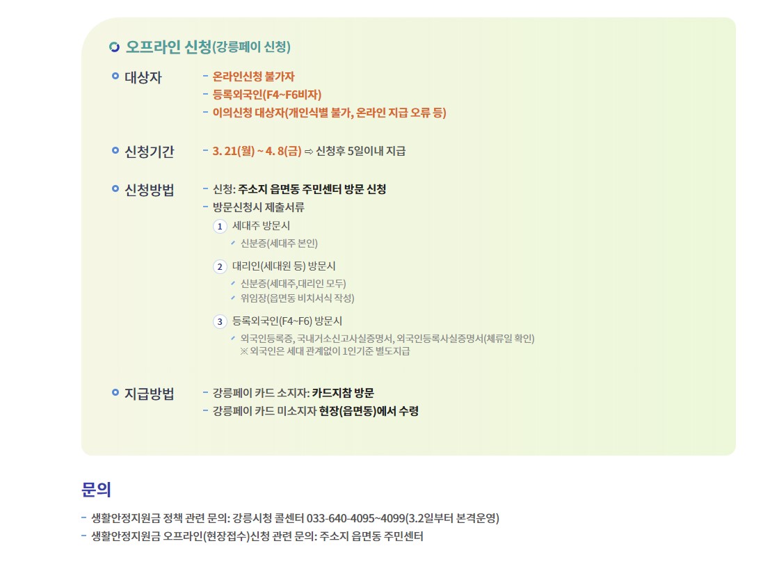 강릉시 긴급생활안정자금 오프라인 신청