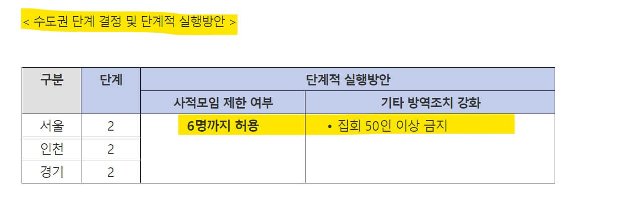 수도권 2단계 (2주간 이행기간)