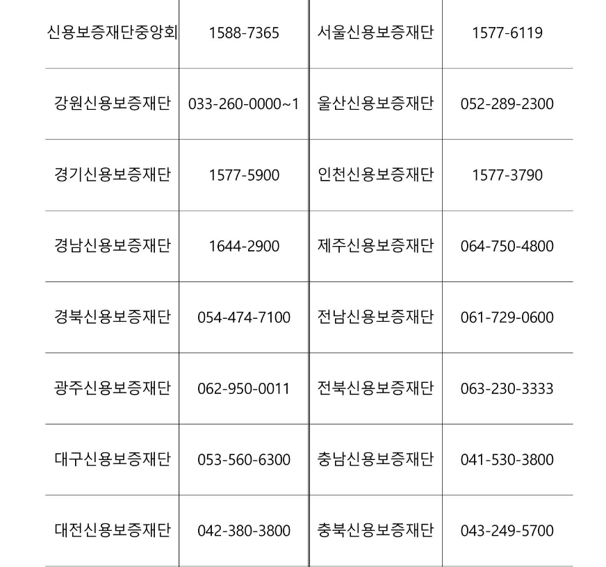 전국 17개 신용보증 재단, 또는 시중은행 각 지점에서 신청 접수가 가능합니다. 궁금한 사항은 지역 신용보증재단으로 문의를 해보시길 바랍니다.