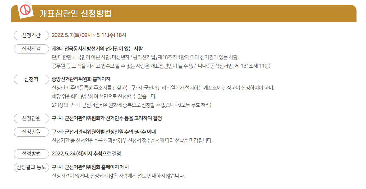 → 중앙선거관리위원회 홈페이지, 개표참관인 신청하기!(nec.go.kr)